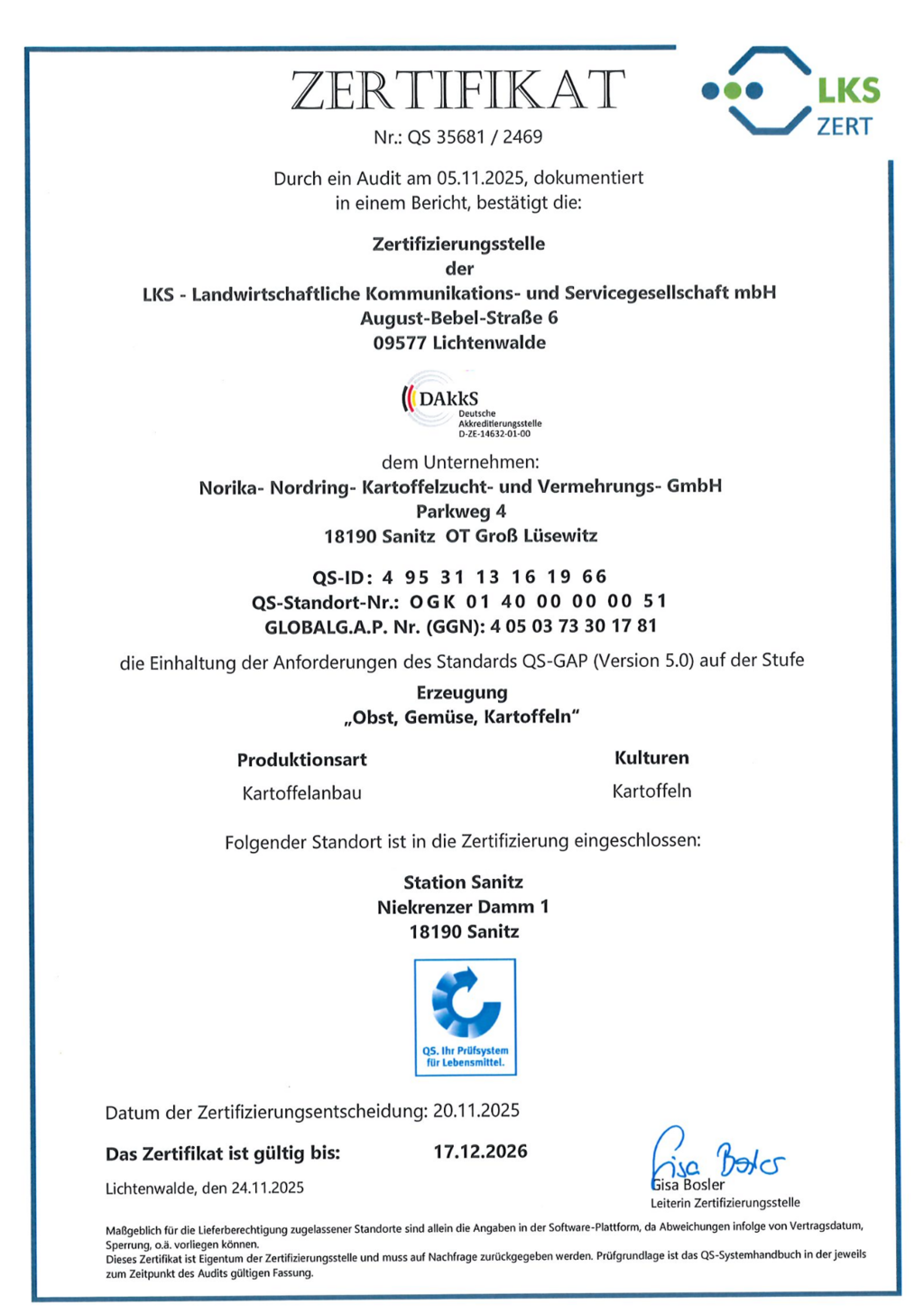 Der Kartoffelzüchter NORIKA GmbH aus Groß Lüsewitz in Mecklenburg-Vorpommern stellt sich dem Generationswechsel